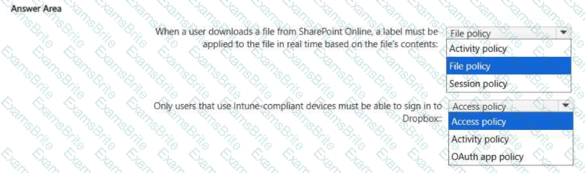 • Only users that use Intune-compliant devices must be able to sign in to Dropbox.