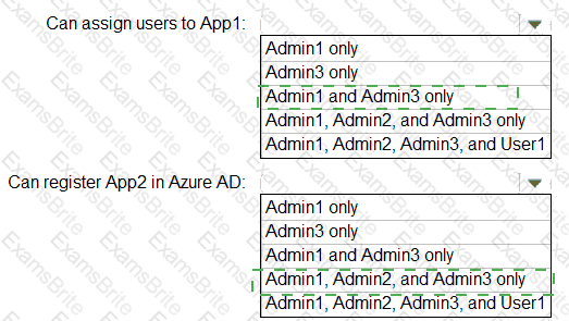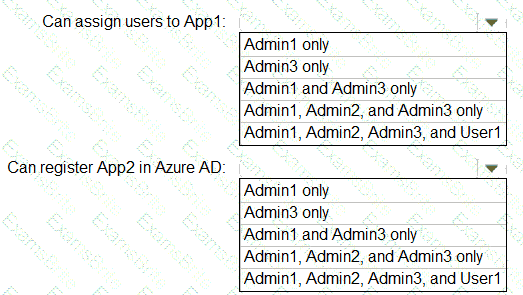 You need to identify who can assign users to App1, and who can register App2 in Azure AD.