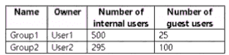 You have an Azure AD tenant that contains the groups shown in the following table.