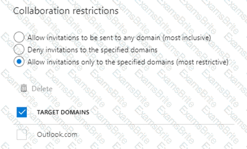 From the External collaboration settings in the Azure Active Directory admin center, you configure the Collaboration restrictions settings as shown in the following exhibit.