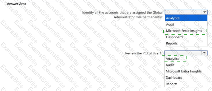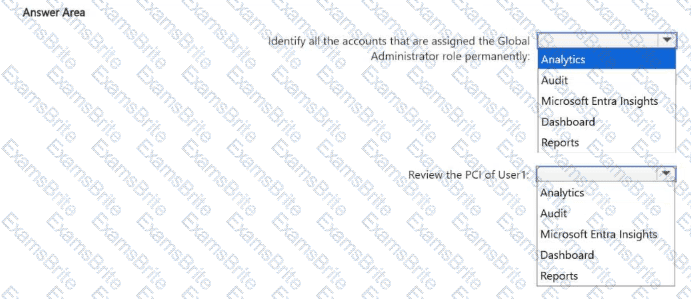 • Identify all the accounts that are assigned the Global Administrator role permanently.