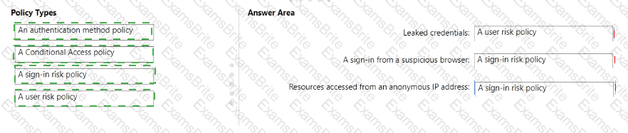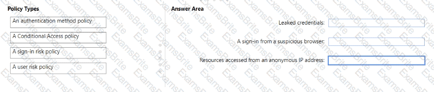 What should you configure for each incident? To answer, drag the appropriate policy types to the correct issues. Each policy type may be used once, more than once, or not at all. You may need to drag the split bar between panes or scroll to view content.