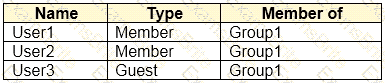You have an Azure Active Directory (Azure AD) tenant that contains the users shown in the following table.