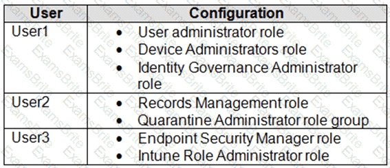 You have a Microsoft 365 E5 subscription that contains three users named User1, User2, and User3.