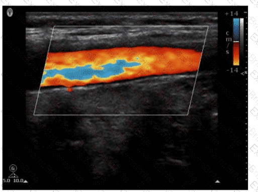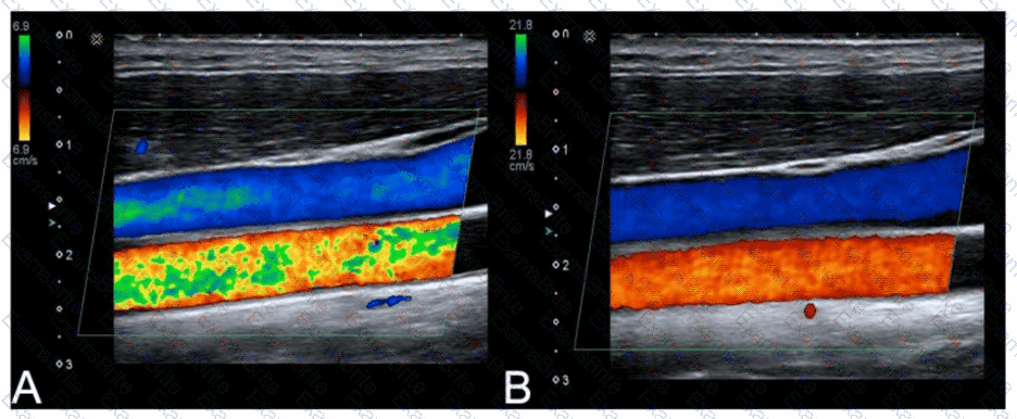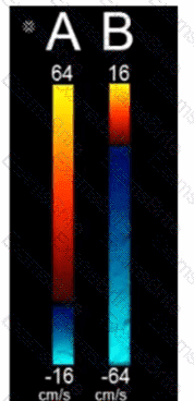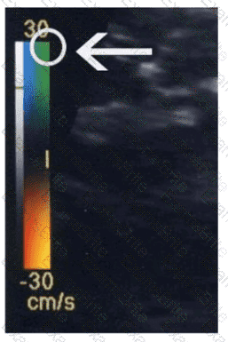 Which pulsed-wave Doppler adjustment would be appropriate to correct the aliasing seen in this image?