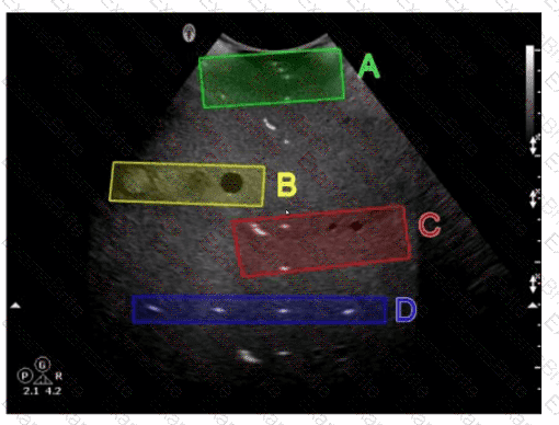 Which target group in this image of a tissue-mimicking phantom is used to evaluate axial resolution?
