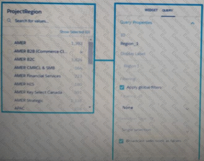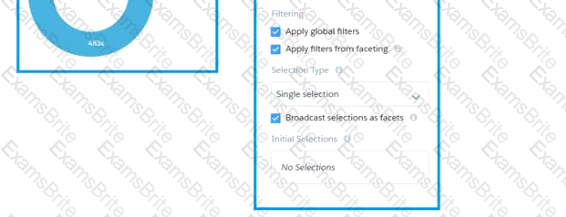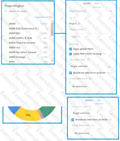 Universal Containers reports that nay selection in the List widget is not affecting the pie chart in one of their tableau CRM dashboard. They query options associated with the List widget and Pie chart are shown in the graphic