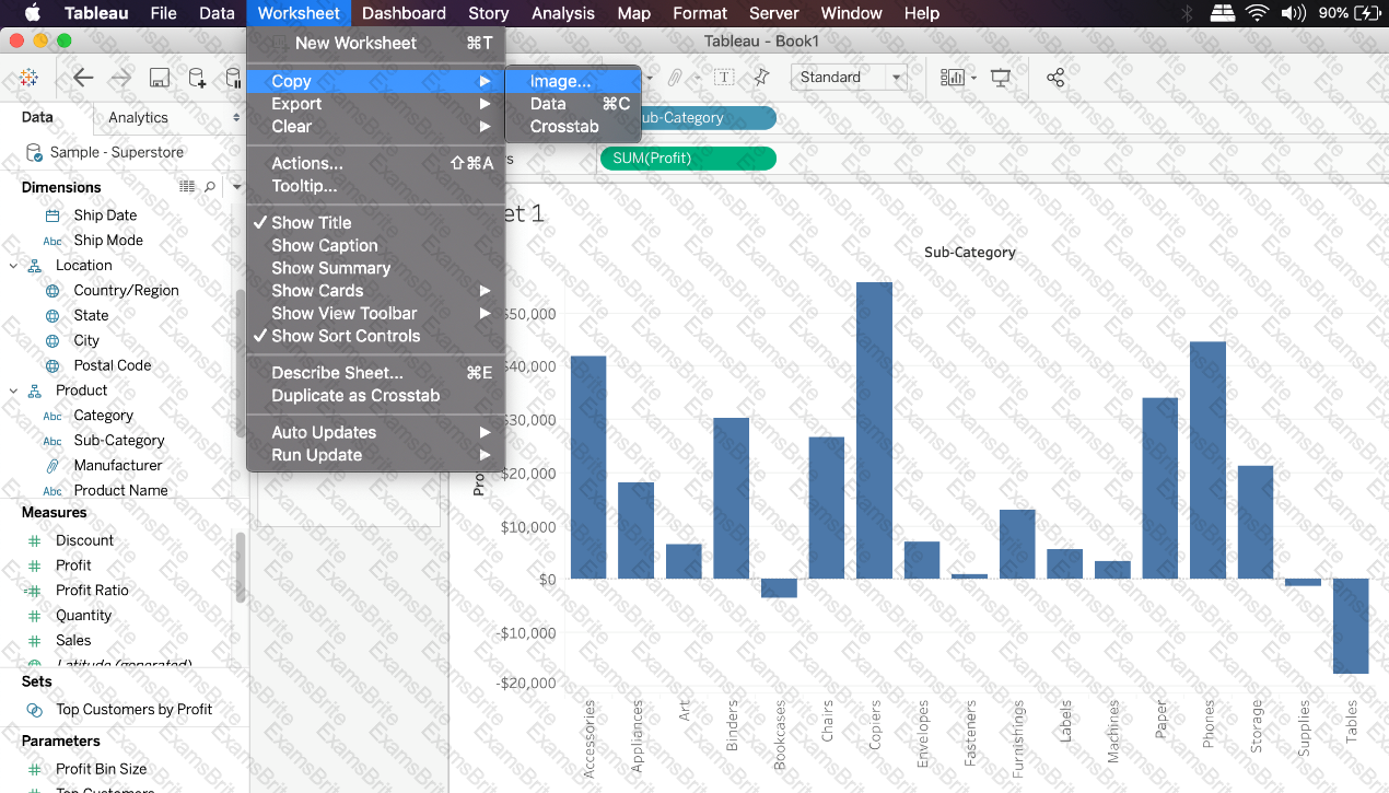 Which of the following are valid ways to copy a worksheet visualisation as an image?