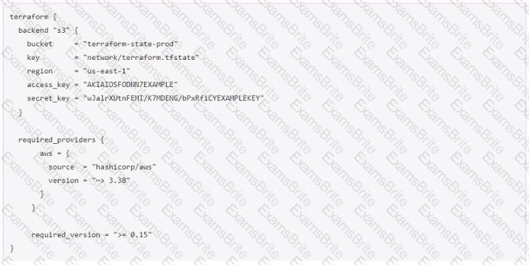 You decide to move a Terraform state file to Amazon S3 from another location. You write the code below into a file called backend.tf.