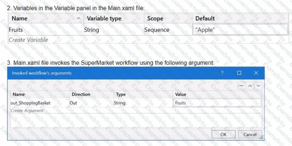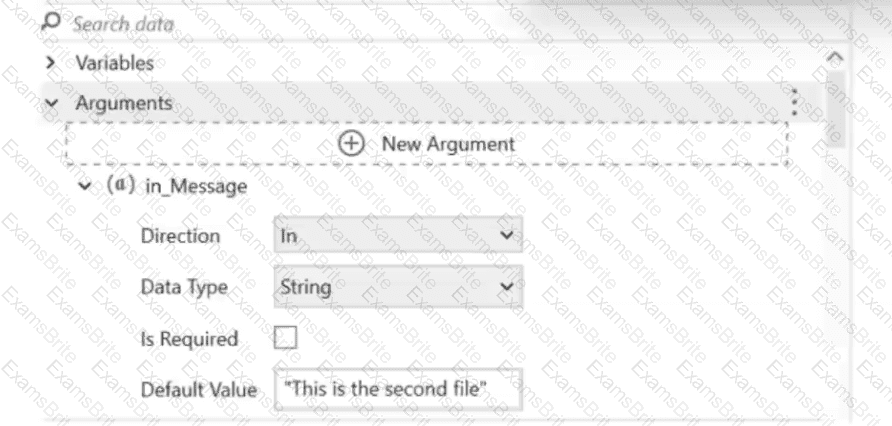 You use a Log Message activity in “SecondaryWorkflow.xamr to print the value of the argument “in_Message". What is the expected result of executing "PrimaryWorkflow.xaml"?