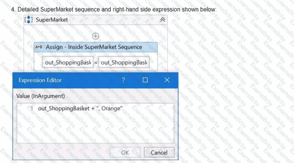 In an RPA Testing project, you created the mock "MySequencemock" for the file "MySequence". You have to update "MySequence" and add a Log Message activity and a Verify Expression activity.