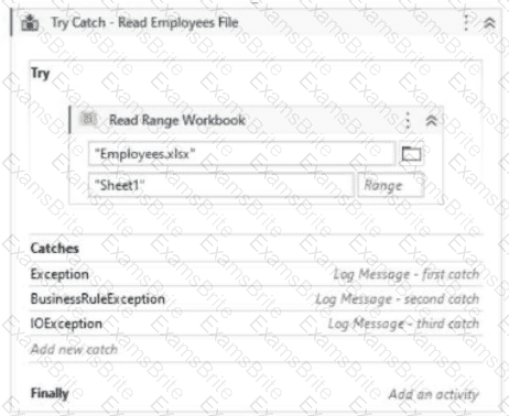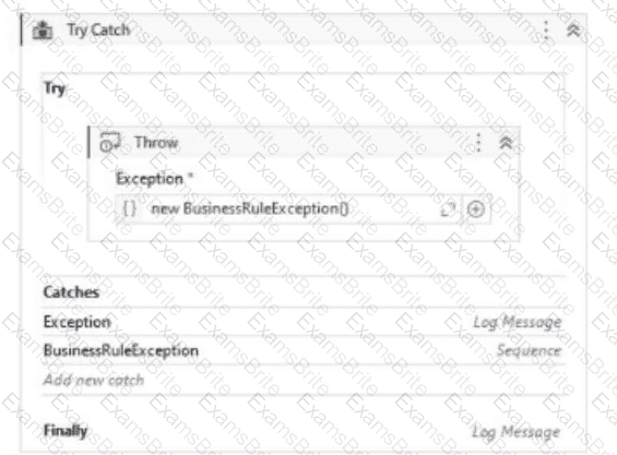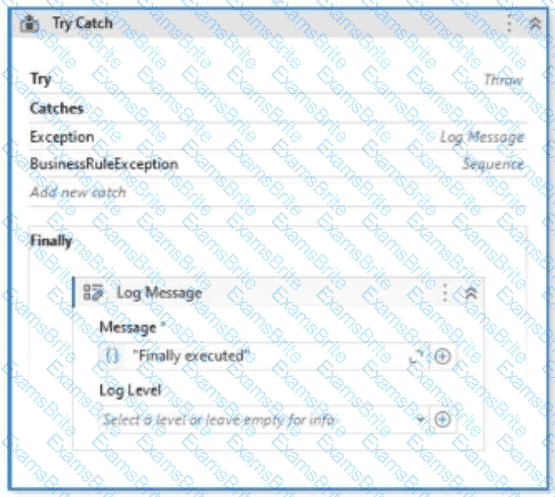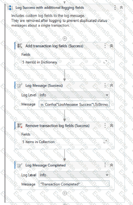 A developer is using the REFramework template to automate a process. In "SetTransactionStatus" file, there is the following sequence of activities, where the last Log Message activity was added by