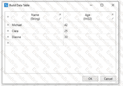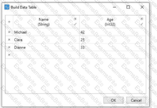 A developer created a DataTable called "DT" using the Build Data Table activity as shown in the exhibit: