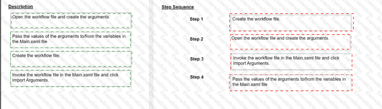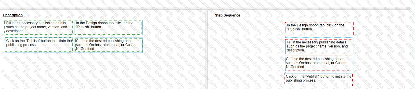 Instructions: Drag the Description found on the left and drop on the correct Step Sequence found on the right.