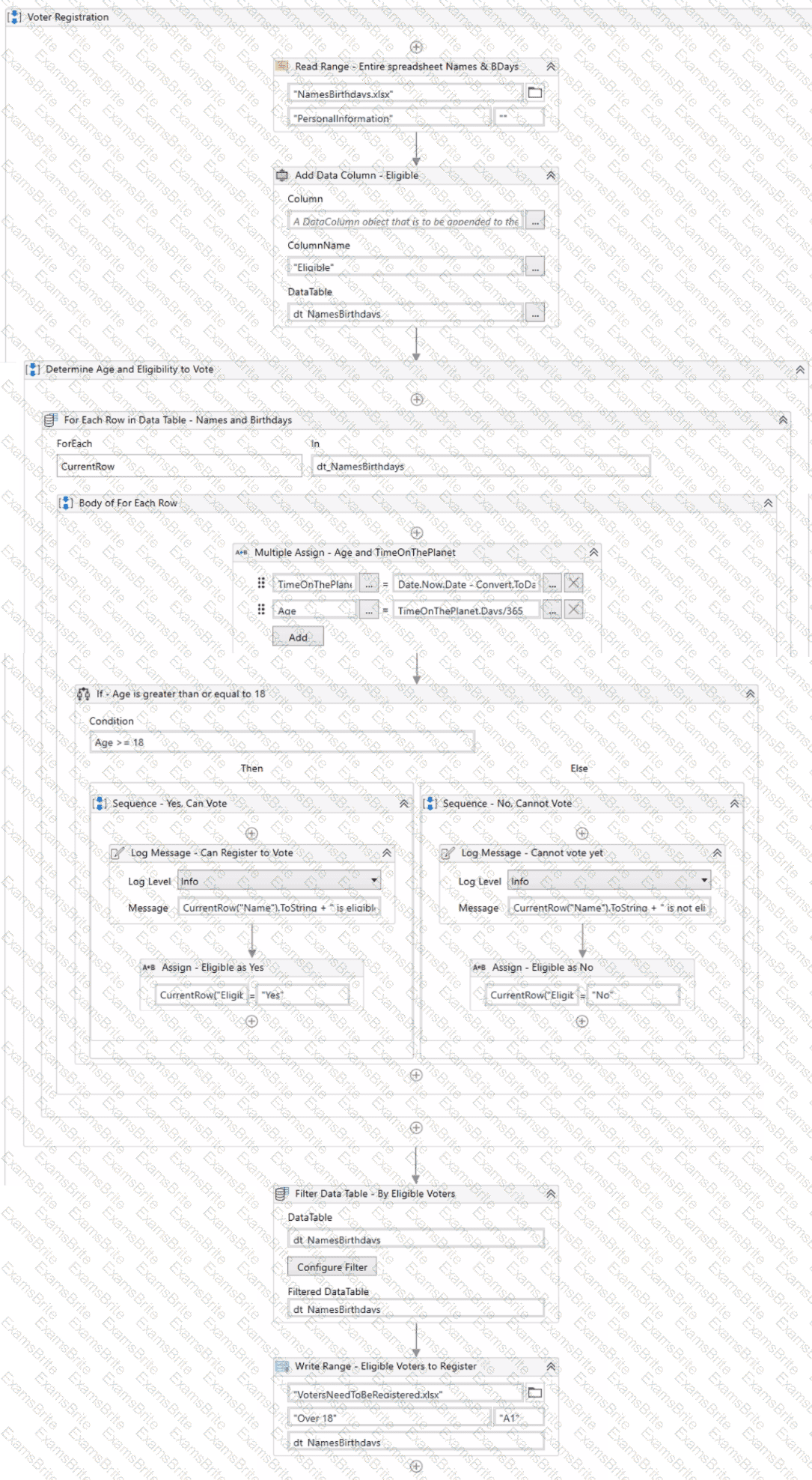 While working in an RPA testing project, you encountered the following activity in one of the workflows included in the project.