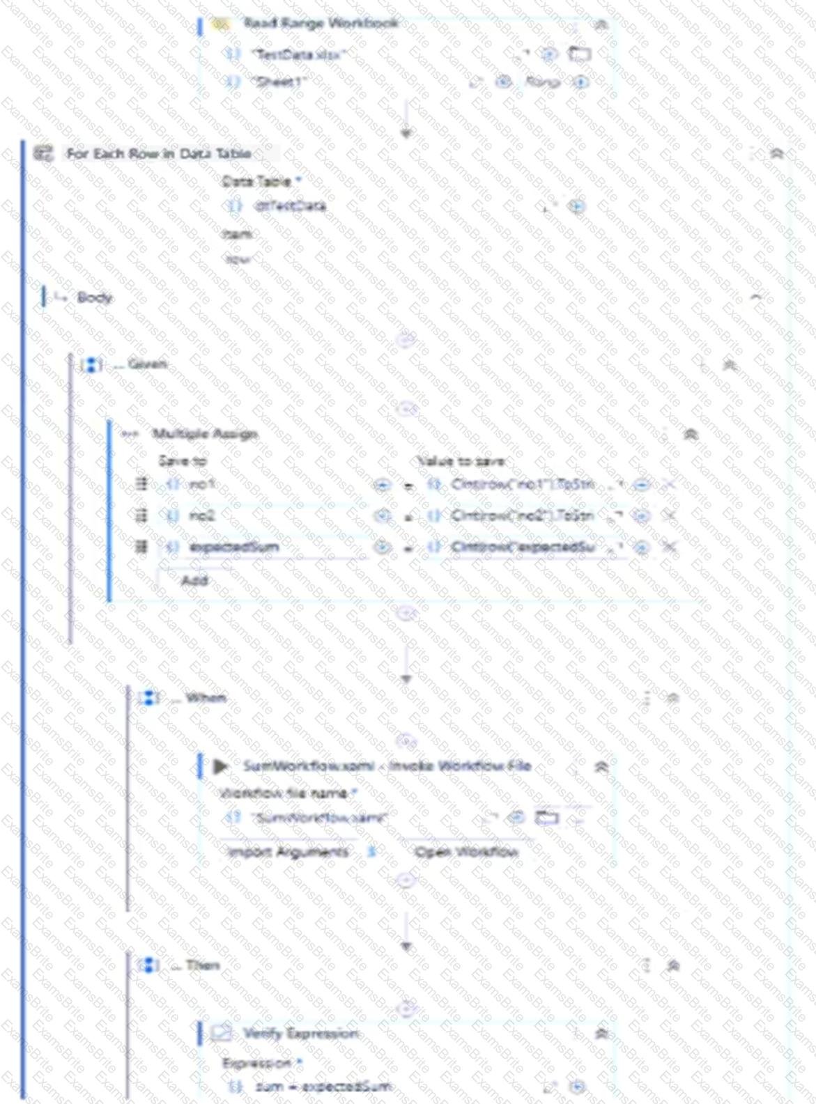 The test data queue was imported in Studio workflow through a variable called testQueue. The structure of the Test Data Queue can be seen below: