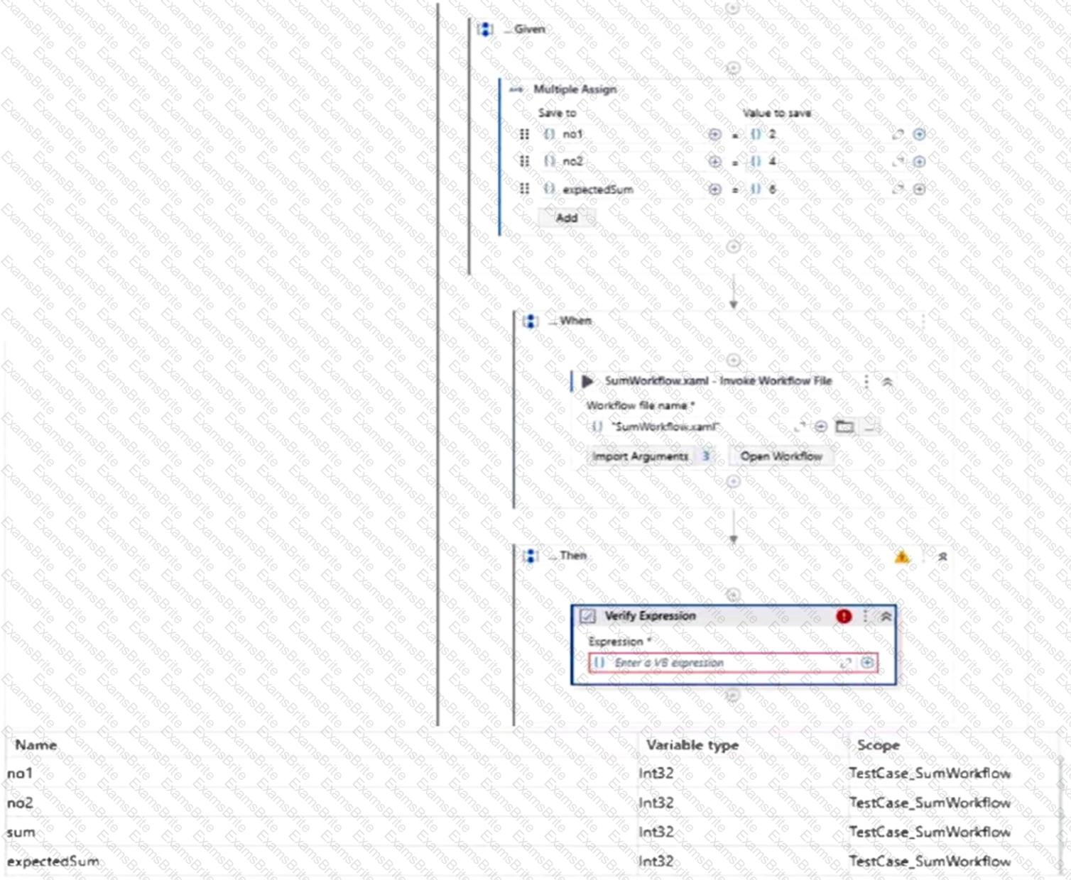A developer, who has just discovered Test Suite, built a test case that checks if the SumWorkflow correctly performs the sum of 2 integers, using different input values from an Excel file.